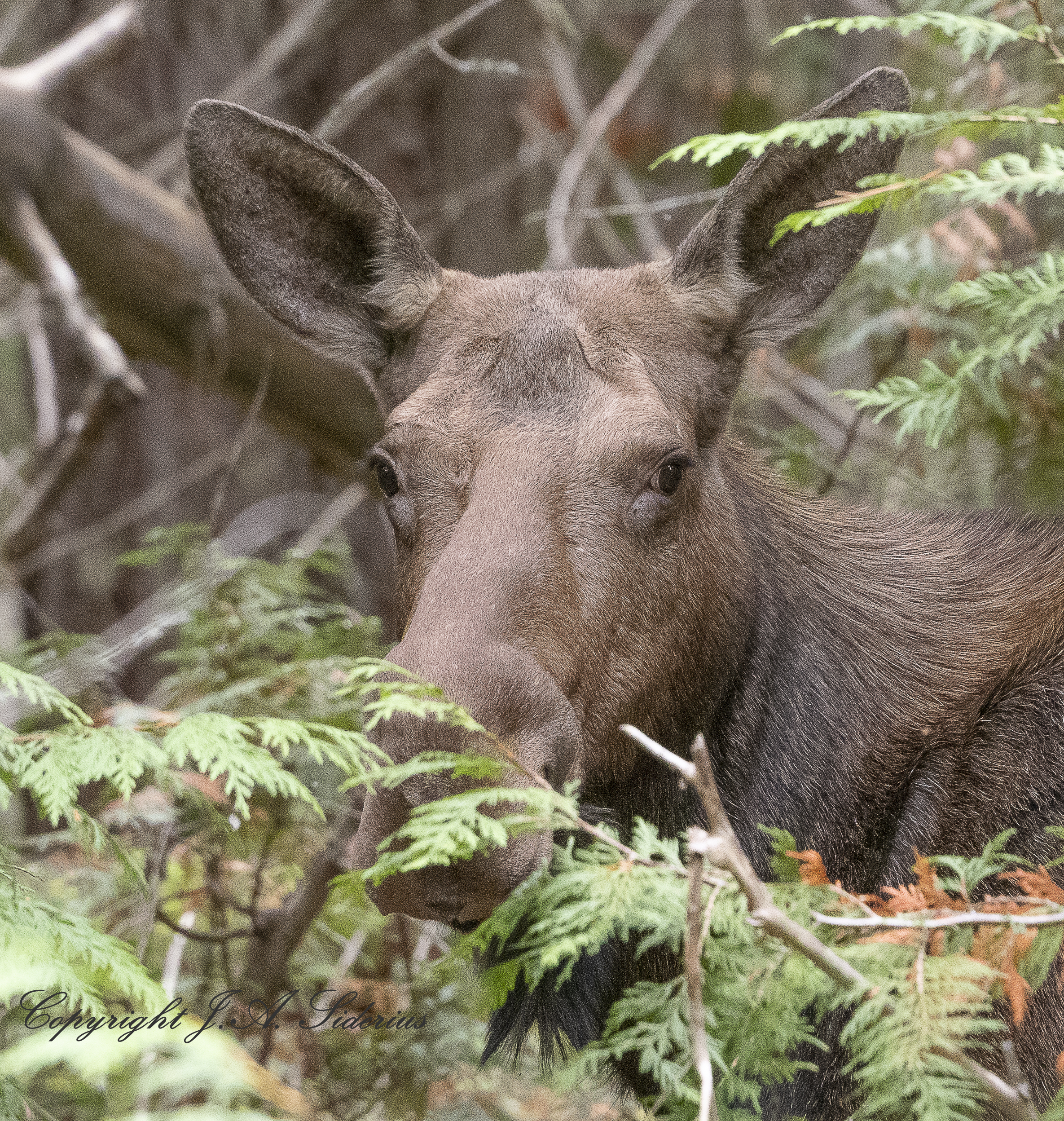 Moose! January 7, 2026 2370 × 2496 Moose! A moose at Champion Lakes PP a moose watches as I walk by the trail at Champion Lakes